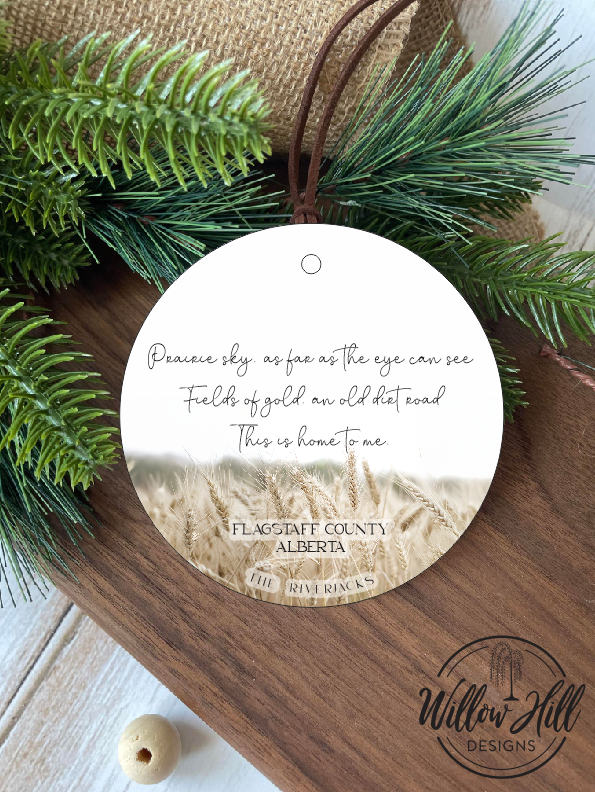 This past year, the River Jacks wrote a song called "This is Home to Me." Here at Willow Hill Designs, we were very inspired by this song and their tribute to the Flagstaff County Region. We have been honored to create an ornament using lyrics from their song to celebrate the Holiday Season.