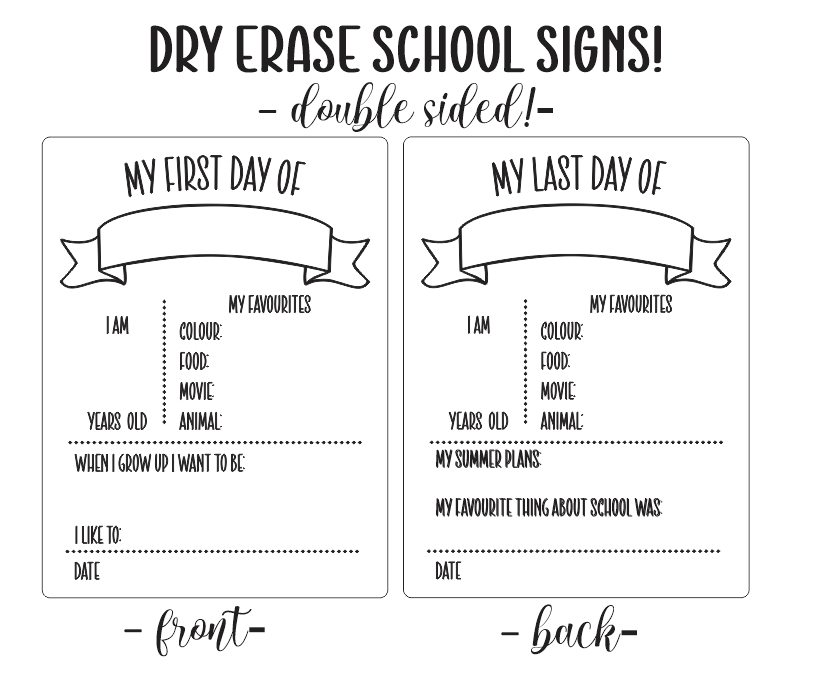 Back to School Signs - Dry Erase, Double Sided (Black & White Option)
