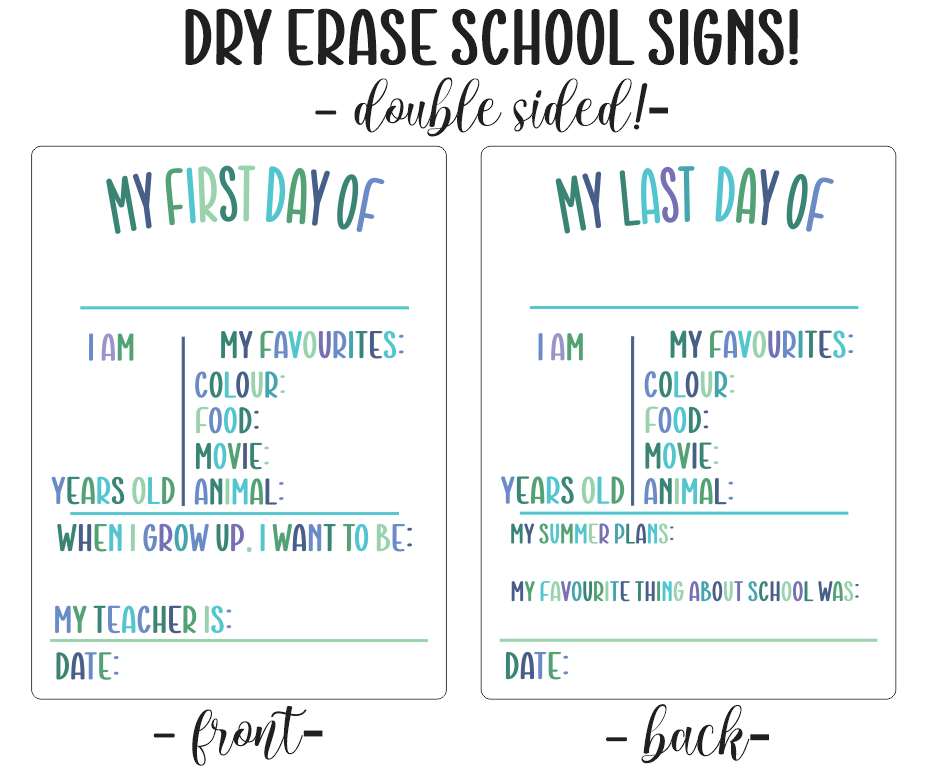 Back to School Signs - Dry Erase, Double Sided (Colour Option)