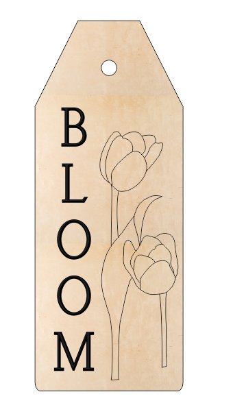 The 6x15" Tag is cut from 1/2" Baltic Birch Plywood or MDF with laser cut lettering and florals.