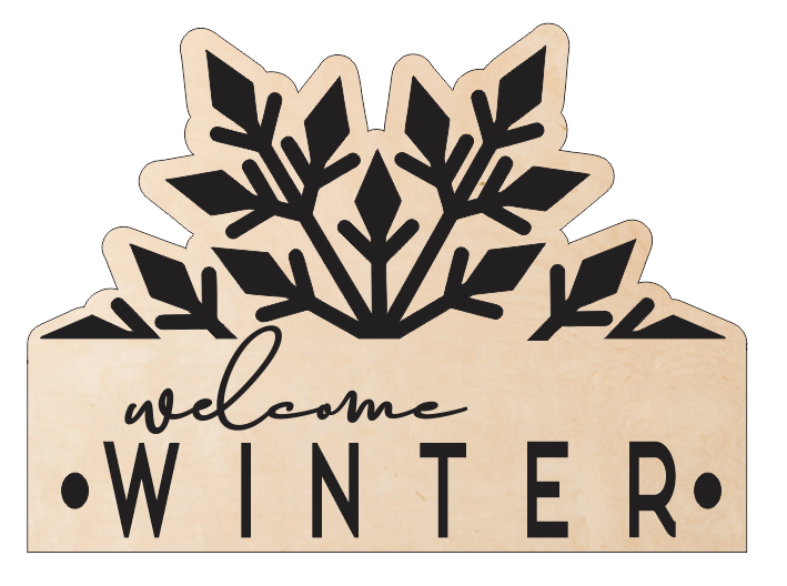We are so in love with this new winter themed design with large snowflake!  The main design is cut from 1/2" Baltic Birch Plywood or MDF with laser cut 3D overlays.