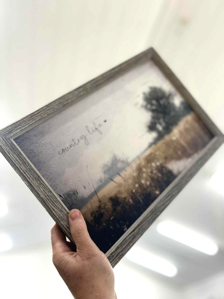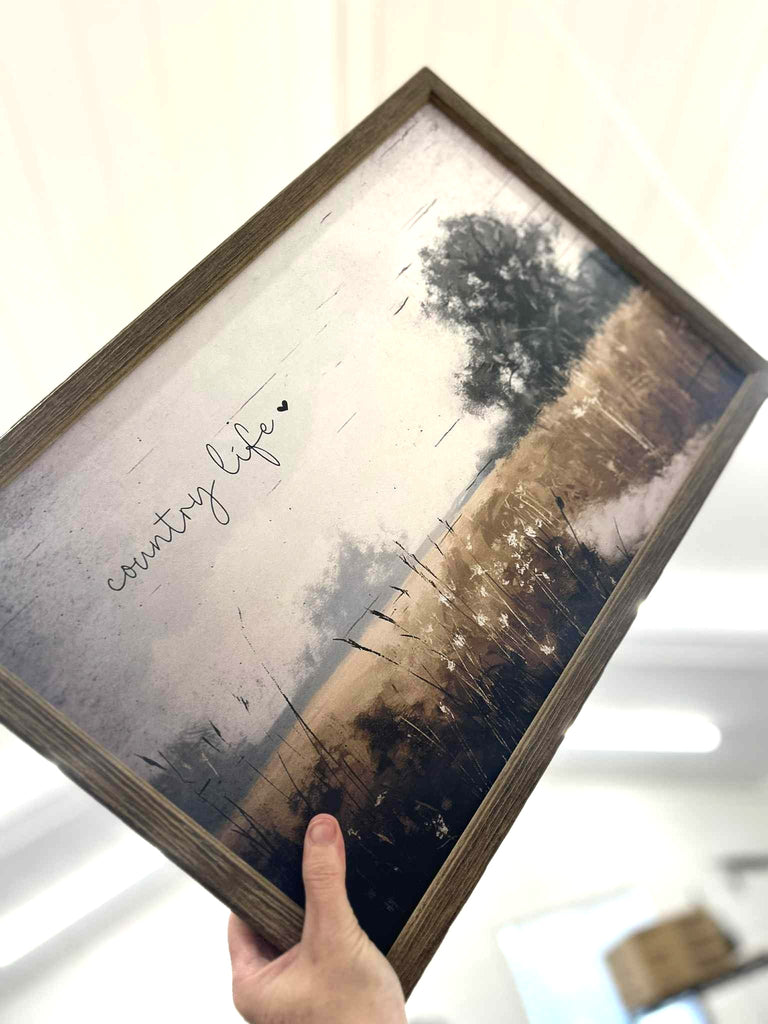 Actual colours may appear slightly different then as shown. Design is permanently printed on 1/2"MDF and finished with our farmhouse frames.  Hanging hardware included.