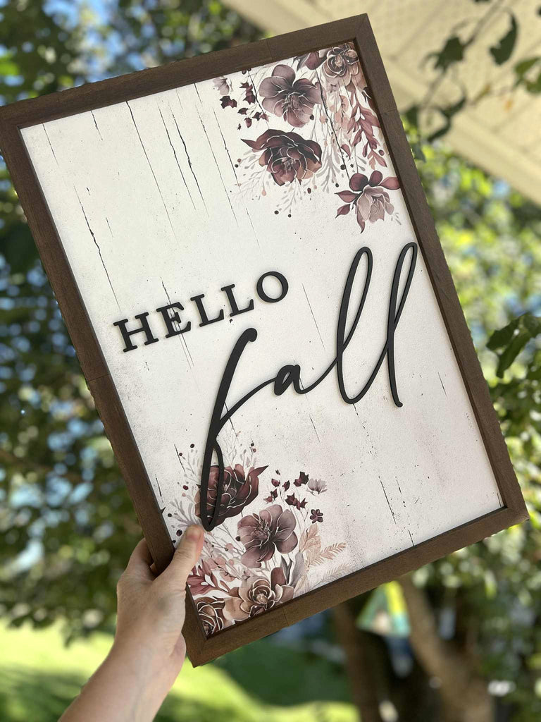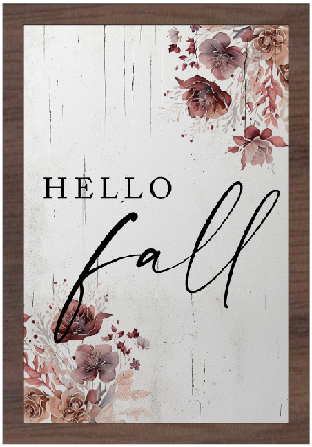 Hello Fall with Florals.  Available with your choice of Farmhouse Style Frames.