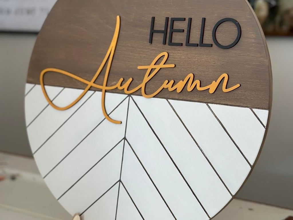 This stunning new design is now ready to finish and decorate for your home! The carved chevron pattern along the bottom, with smooth top with Hello Autumn 3D Overlay.