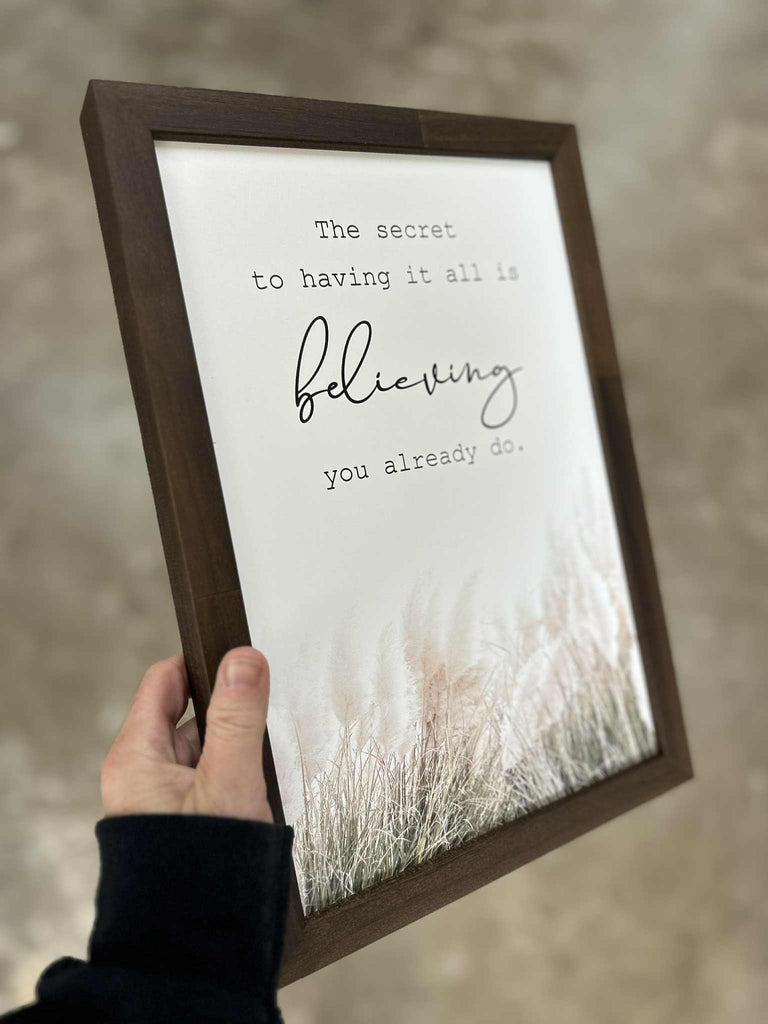 Actual colours may appear slightly different then as shown. Design is permanently printed on 1/2"MDF and finished with our stained farmhouse frames. Hanging Hardware included.