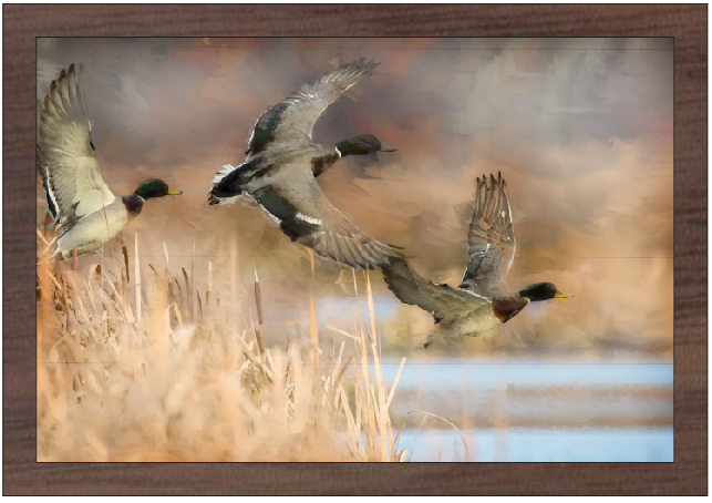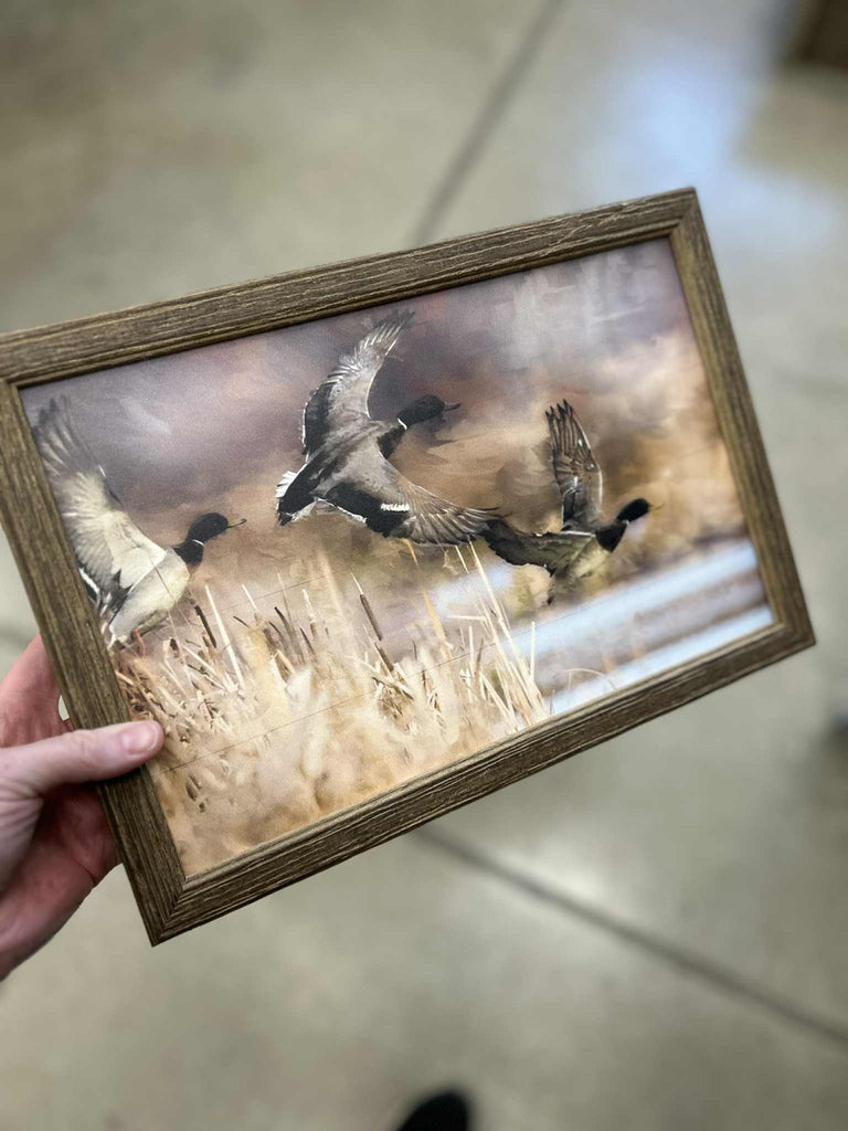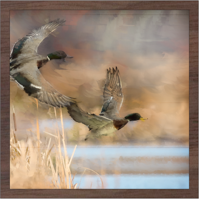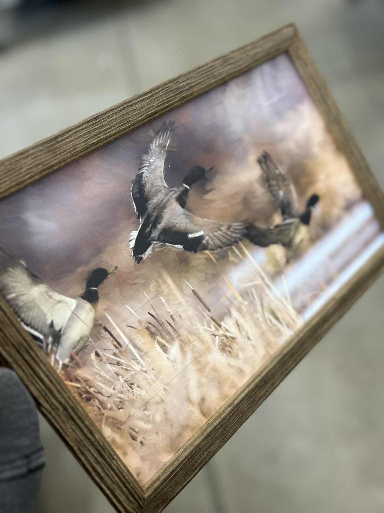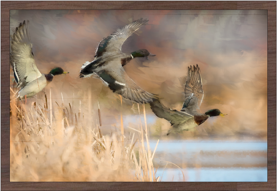 Flight of the Wild Wings (Ducks Oil Painting). Available with your choice of Farmhouse Style Frames.