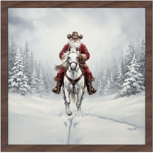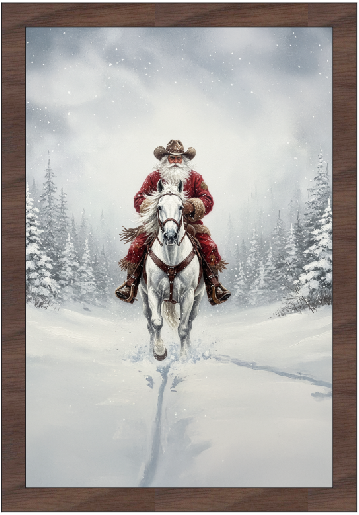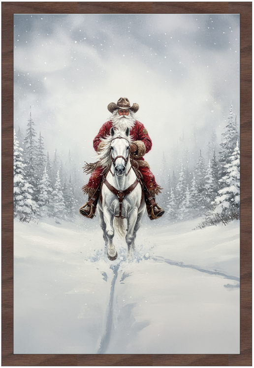 Western White Horse Cowboy Santa. Available with your choice of Farmhouse Style Frames.