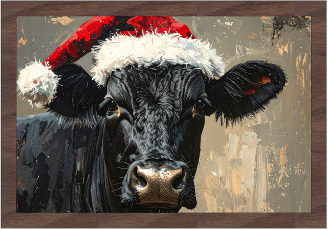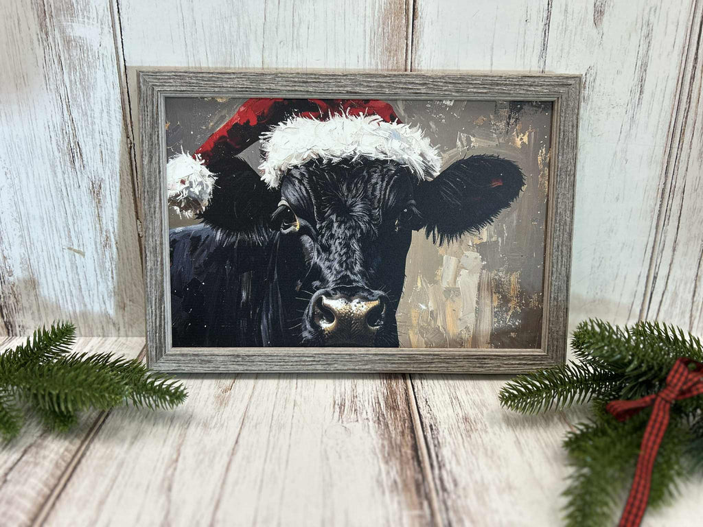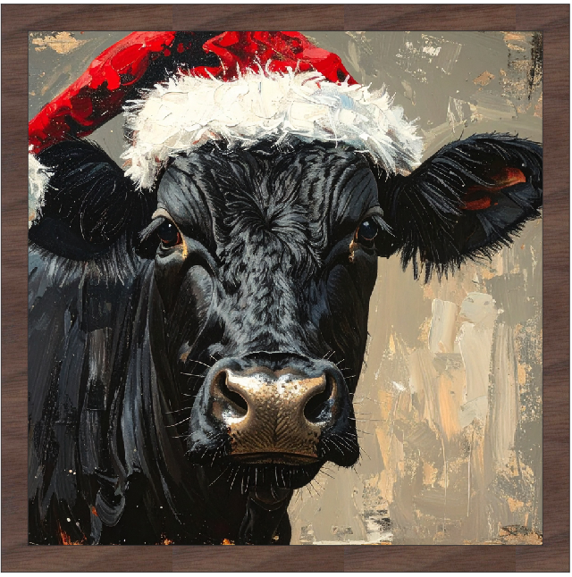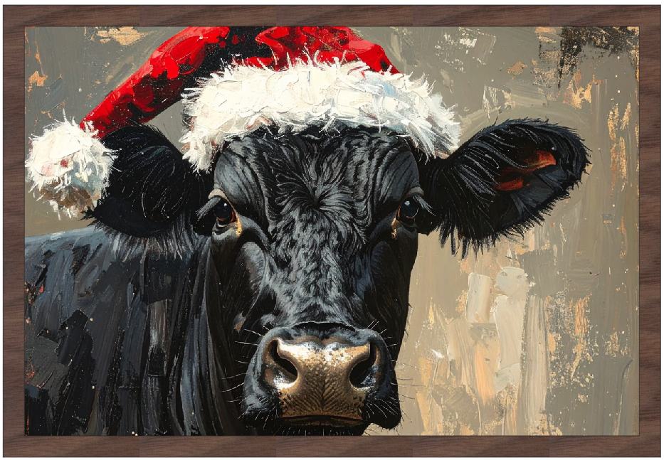 Festive Angus Cow. Available with your choice of Farmhouse Style Frames.