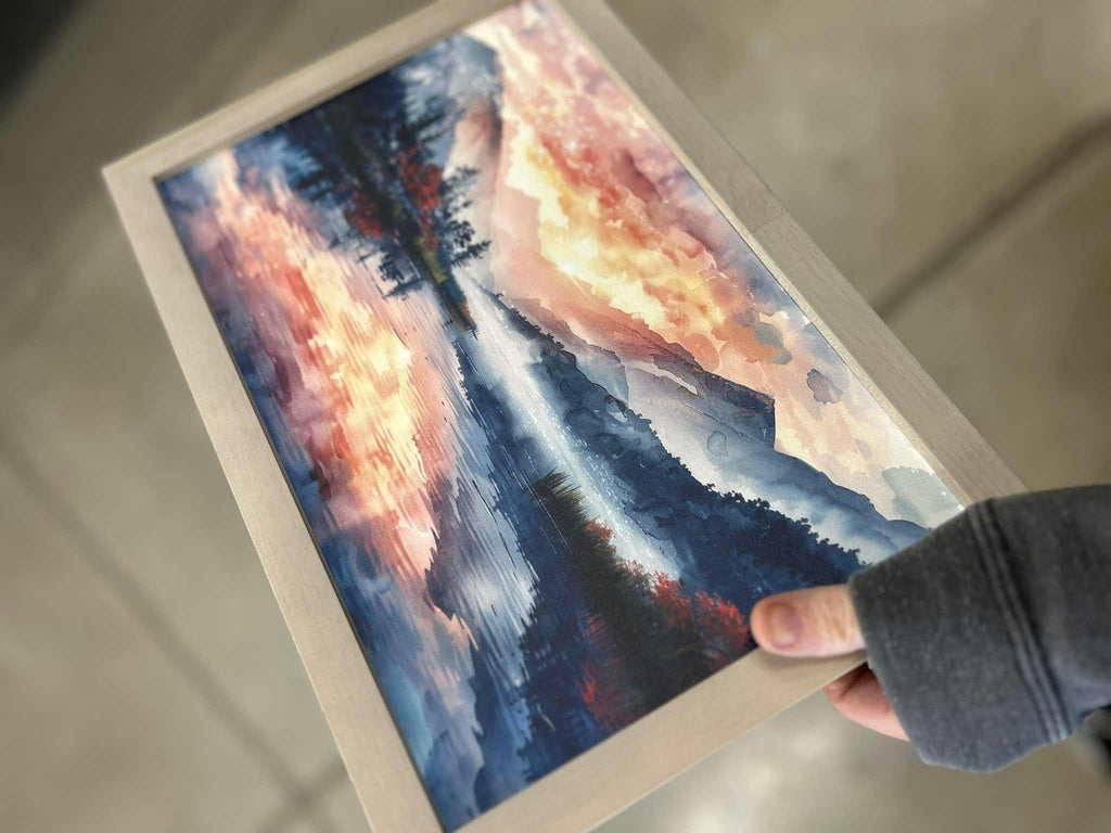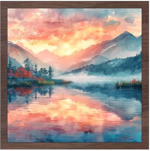 Mountain Lake Sunset. Available with your choice of Farmhouse Style Frames.