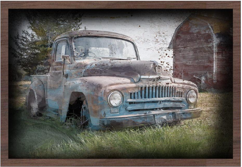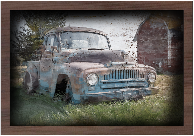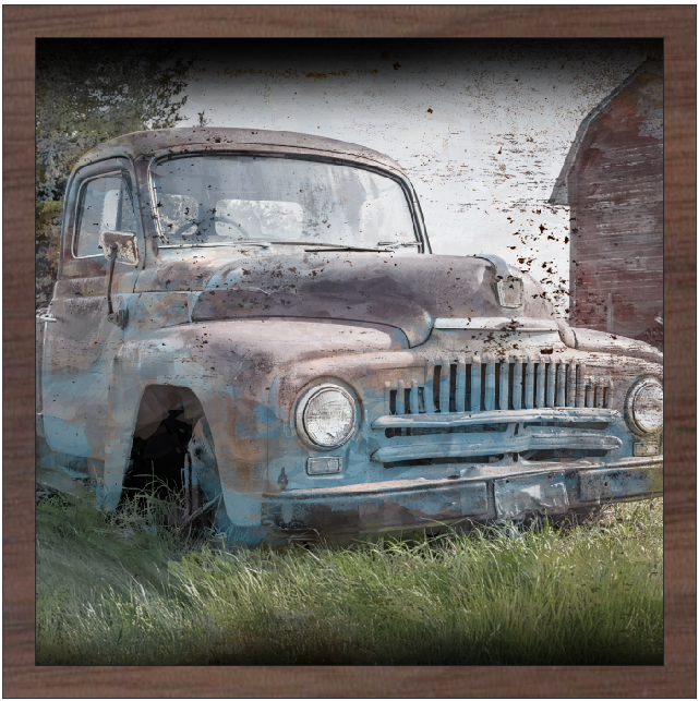 Vintage Oil Painting Old Blue Truck. Available with your choice of Farmhouse Style Frames.