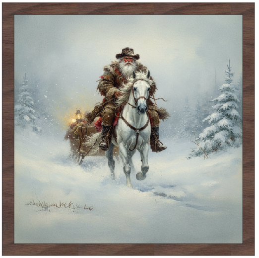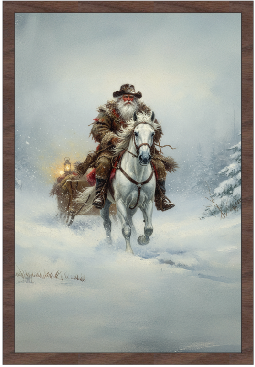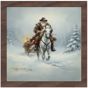 Western Santa and Sleigh. Available with your choice of Farmhouse Style Frames.