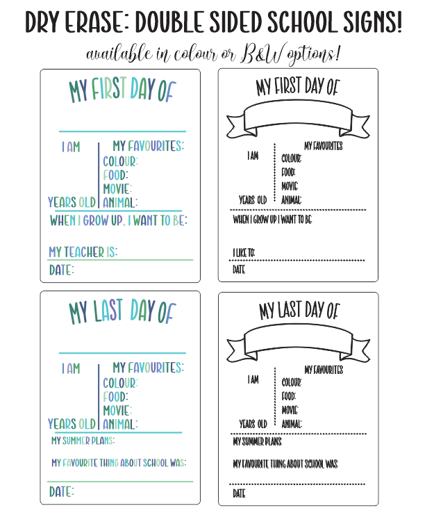 Back to School Signs - Dry Erase, Double Sided (Black & White Option)