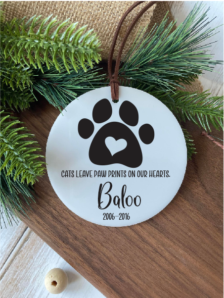 Cats Leave Paw Prints on our Hearts - Cat Memorial- Christmas Ornament