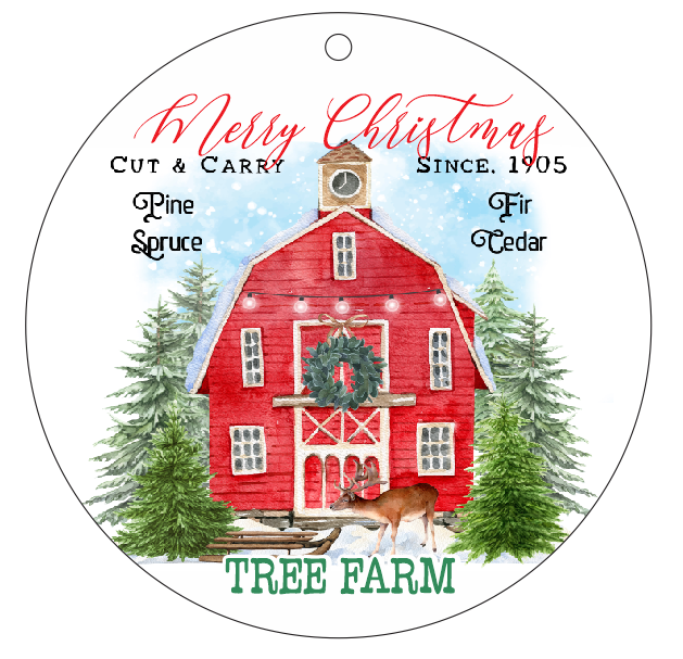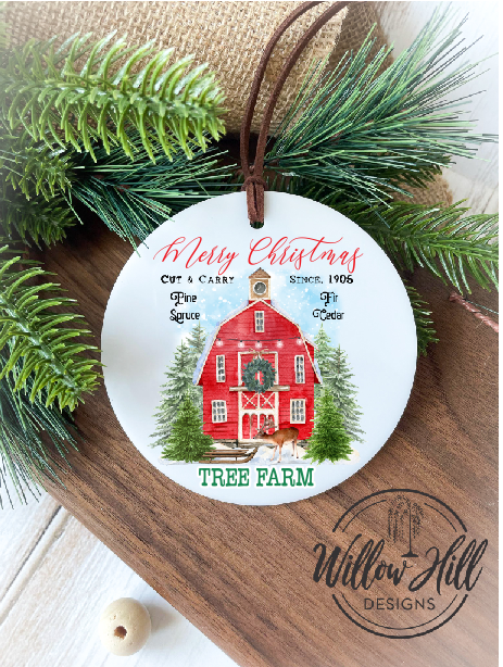 Christmas Tree Farm - Red Barn- Christmas Ornament