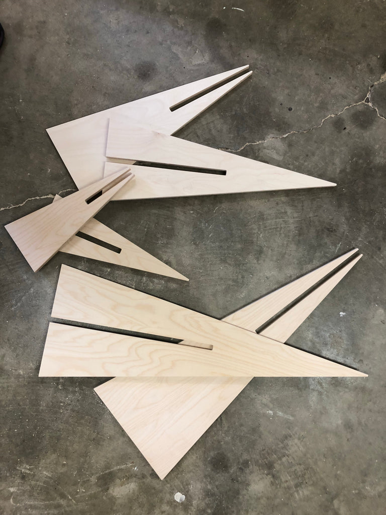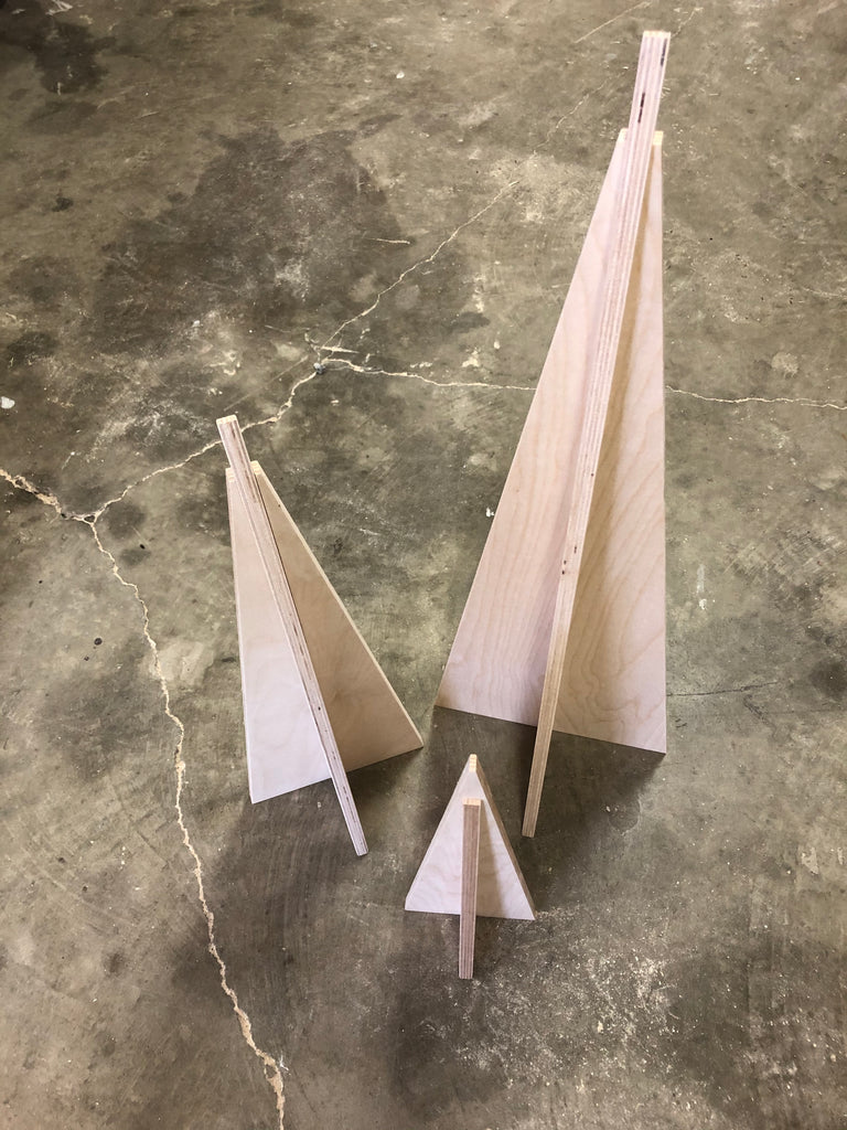 Trees come in 2 pieces, to be slotted together to create the 3-D Standing Effect. Trees come sanded and ready for paint, stain and assembly. We recommend painting them assembled, as paint/stain could cause wood to swell and make them harder to assemble.