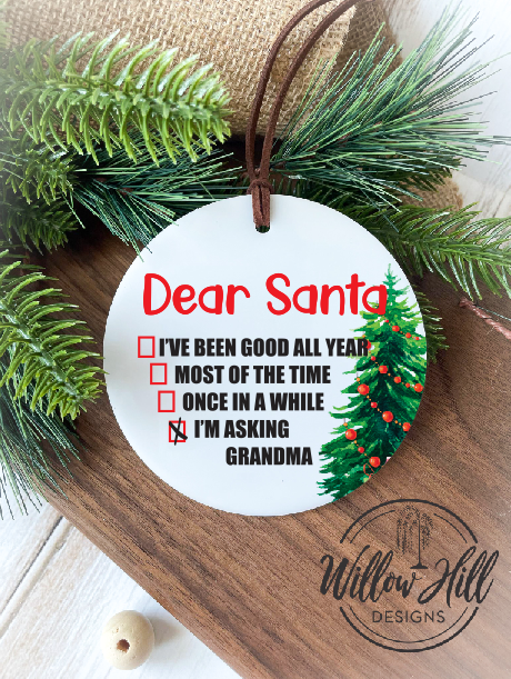 This ornament can be personalized with your own "I'm asking"! Whether it be Nana, Grandma, Grandpa, Papa, Nanny, Baba, Guido, Dado..... we have you covered! Just pop us a message upon checkout.