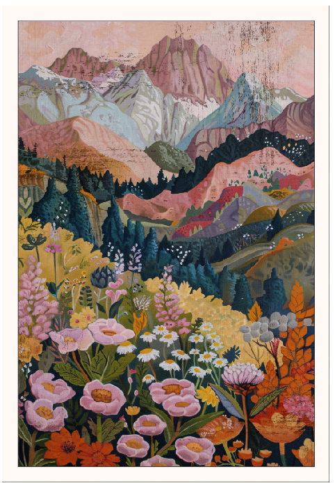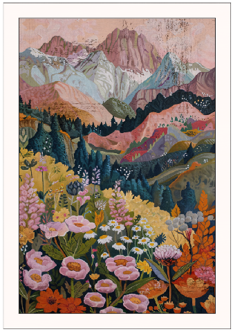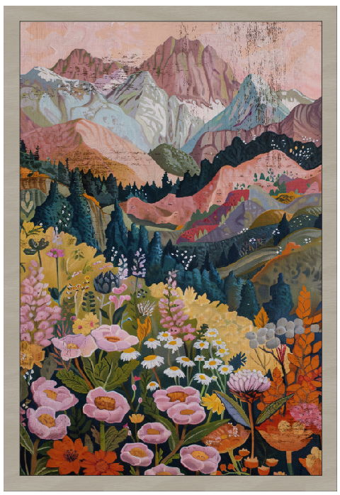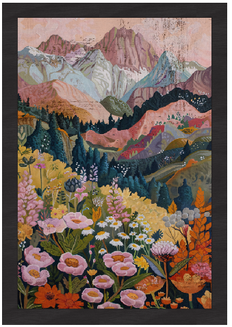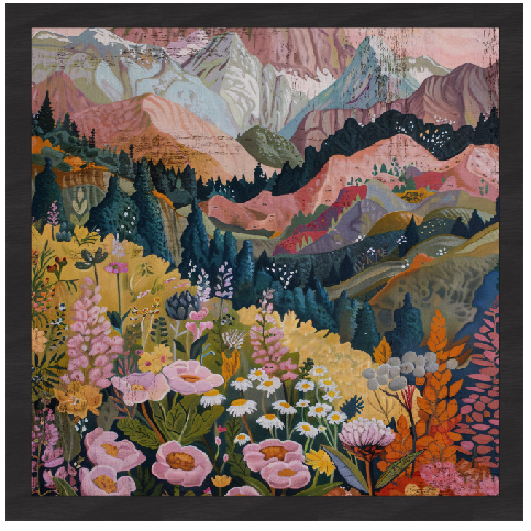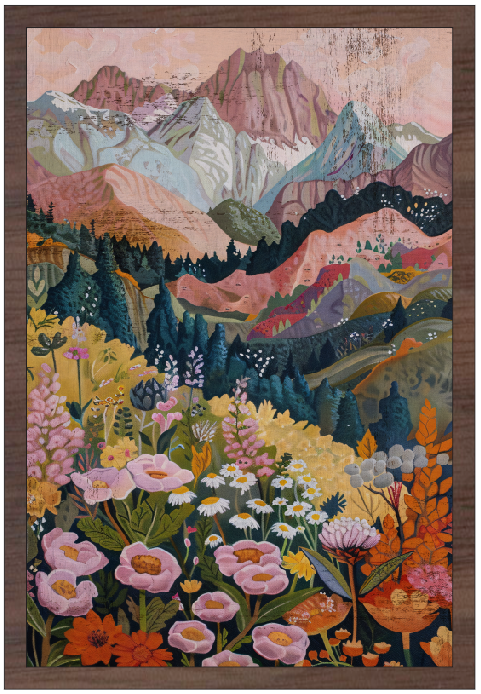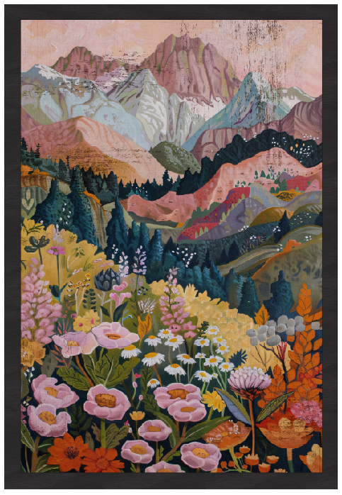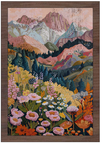 Distressed Abstract Floral Mountain. Available with your choice of Farmhouse Style Frames.