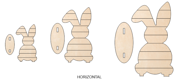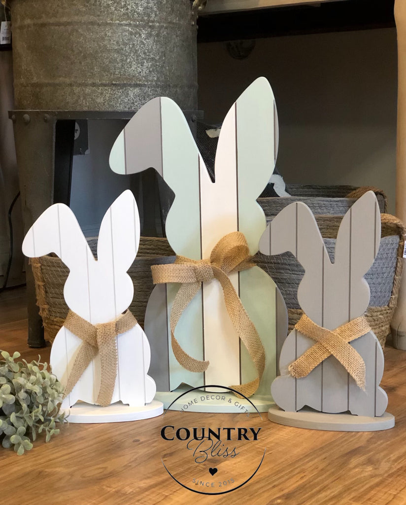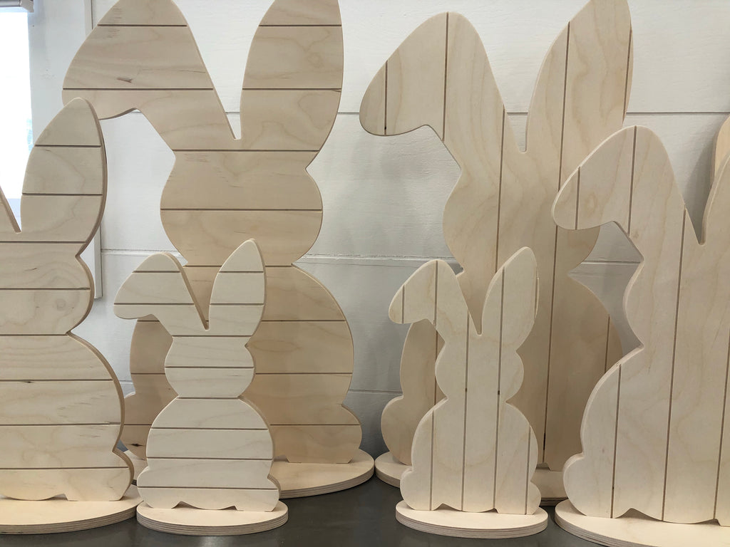It's almost time for Easter!  These Floppy-Ear bunnies are just the cutest thing ever!  Available in single sizes of 12, 18, 24" and also the set of three!  Available in vertical or horizontal pallet lines.  Each bunny includes it's own separate base.