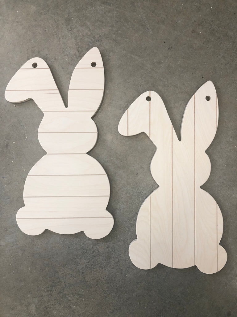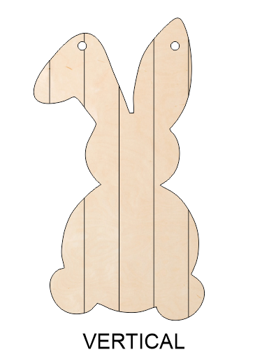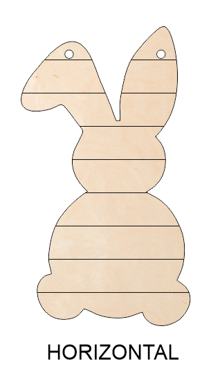 Our popular Floppy-Ear Bunnies are now available as a door hanger! Choose from Horizontal or Vertical Pallet Lines! Cut from 1/2" Baltic Birch Plywood or 1/2" MDF, sanded and ready for paint/stain. Includes two holes in the ears for easy hanging!