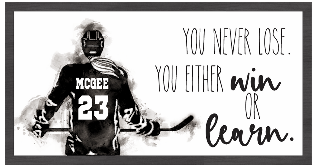 These watercolour splatter hockey themed designs are a great addition to any room. Each design can be left generic or personalized with a special name or number.