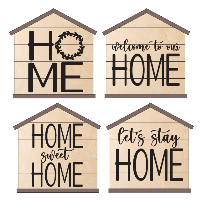Available on 11x12" and 14x15" Home Shaped Pallet Signs with roof and base.