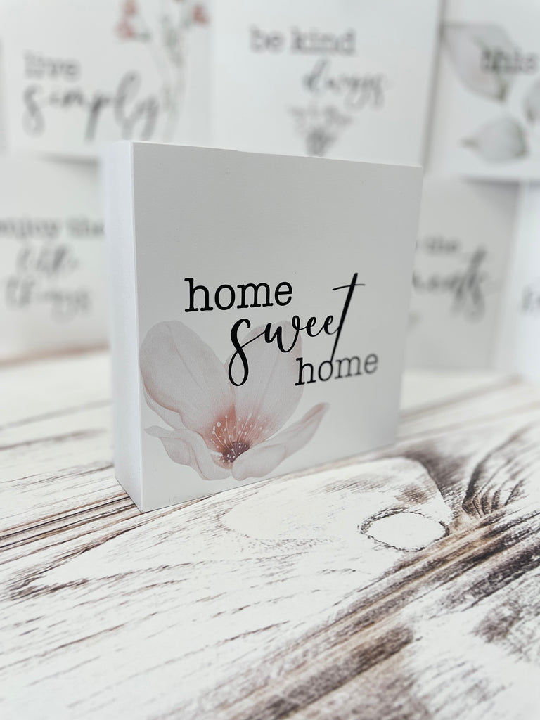These sweet little shelf sitters are sized at 6x6" in size and are double sided! An easy way to change up your décor without having to buy something new! With high quality watercolour graphics, our designs are neutral, but still elegant and charming - a perfect blend of rustic and contemporary to suit any style. Great for gifting, or keeping for yourself, these are designs you will love to display for years to come!