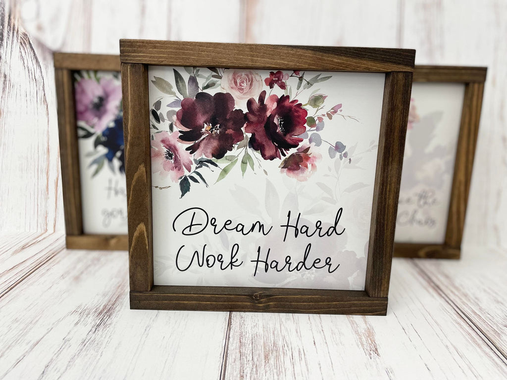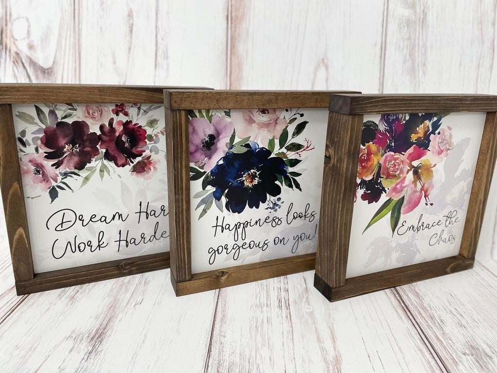 Actual colours may appear slightly different then as shown. Design is permanently printed on 1/2"MDF and finished with our stained farmhouse frames. Hanging Hardware included.