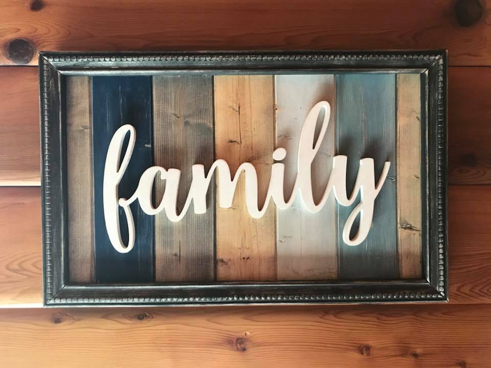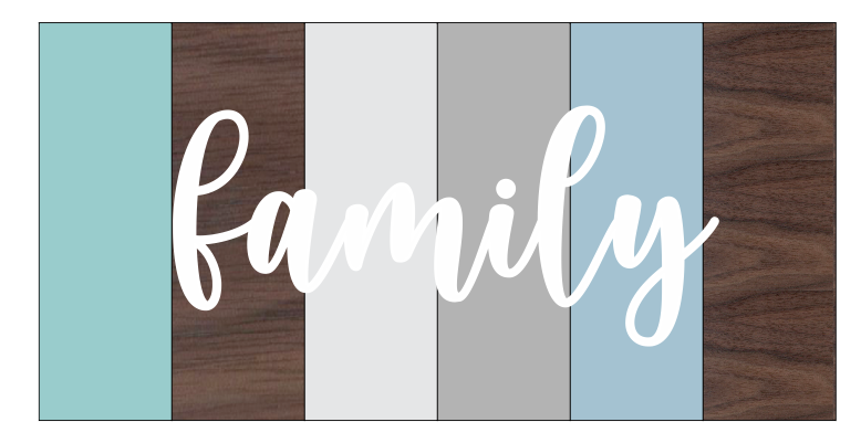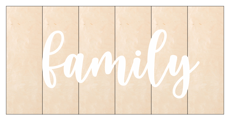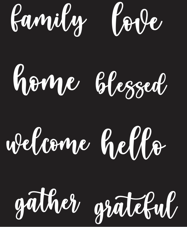 The kit comes with your choice of word (family, love, home, blessed, welcome, hello, gather, grateful), sized proportionately to fit the 12x24" Backer.