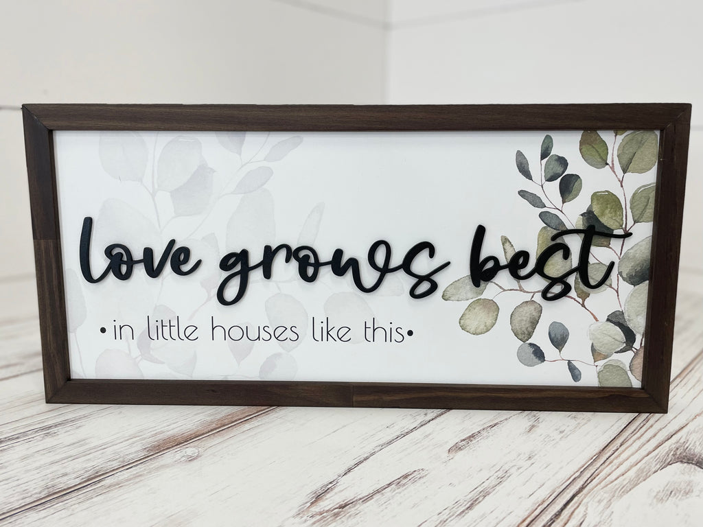 Actual colours may appear slightly different then as shown. Design is permanently printed on 1/2"MDF and finished with our stained farmhouse frames. Hanging Hardware included.