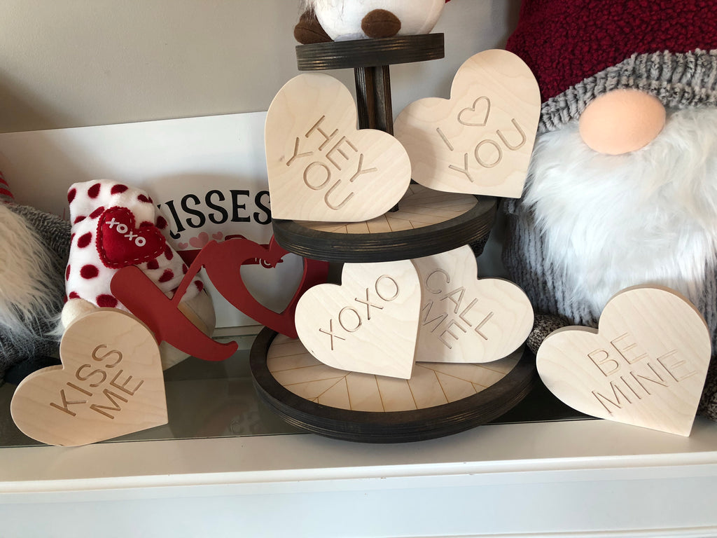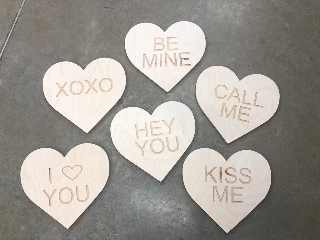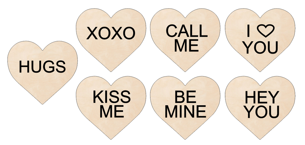 Remember these sugar filled Conversation Hearts? This is a new way to enjoy them without hurting your teeth! Super cute decorations ready for your home! Cut from 1/2" Baltic Birch Plywood or 1/2" MDF with laser cut lettering for on top!