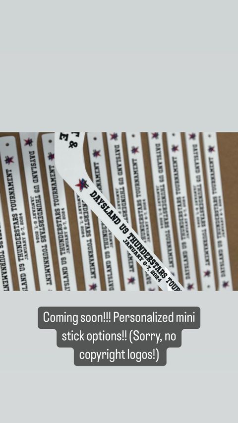 Mini Hockey Sticks - Cut from 1/4" White acrylic and permanently printed.  Individual Player Personalized Sticks Available, or Team Sticks with Group Logo.  Lots of options for personalization!