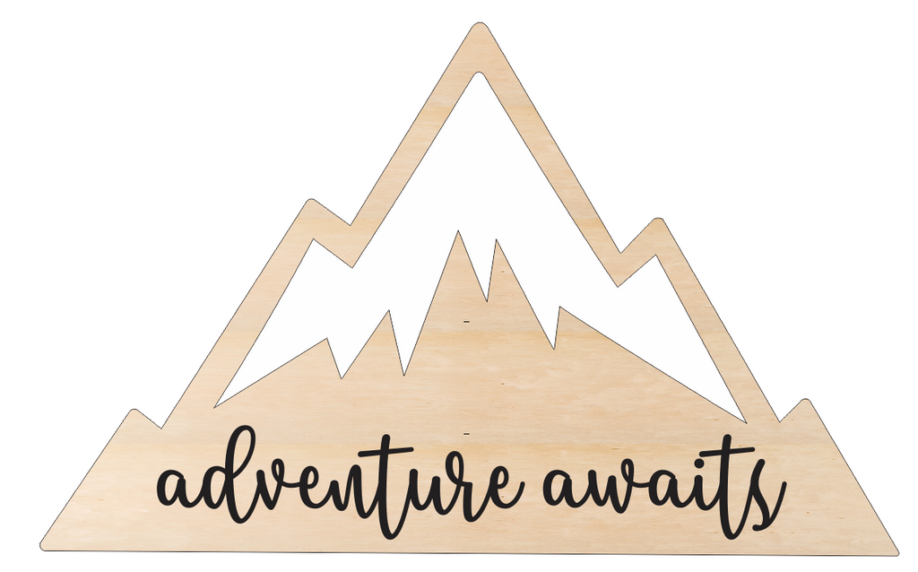 Mountains are cut from 1/2" Baltic Birch Plywood or MDF. Laser cut overlays are cut from 1/8" Baltic Birch Plywood.