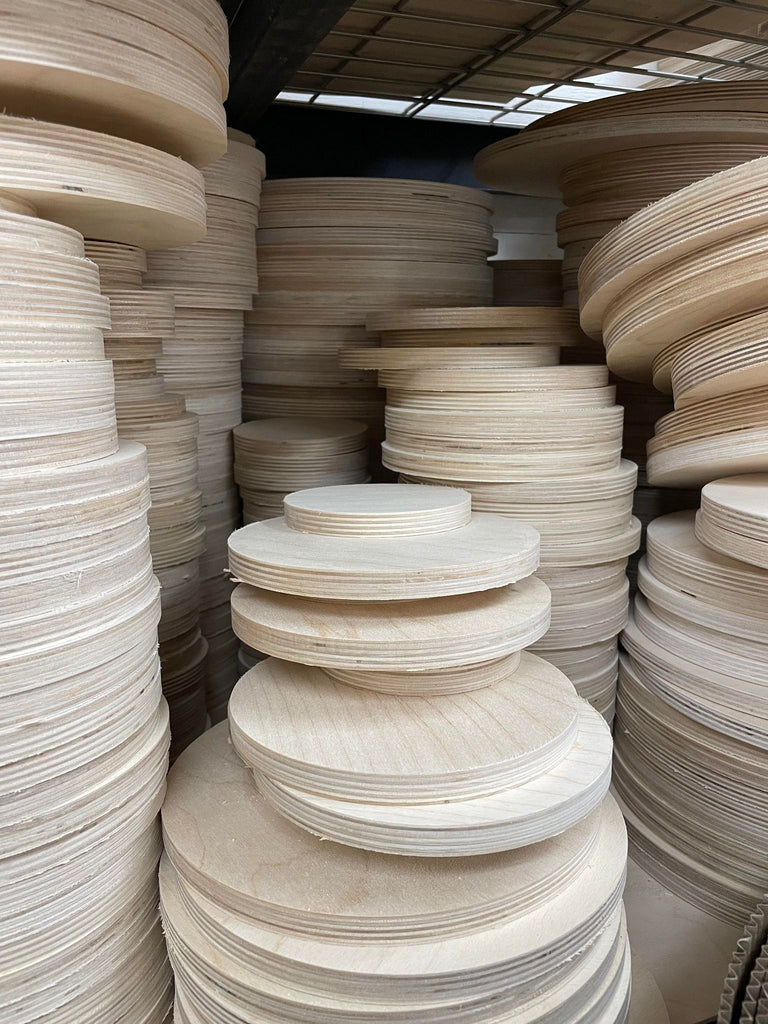 When cutting our large sheets for customers, we often cut extra rounds and circles in the 'leftover' space! This means, sometimes we get quite the collection of extra rounds on our shelf!
