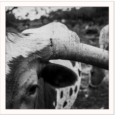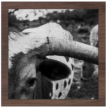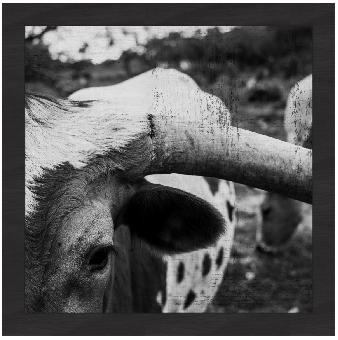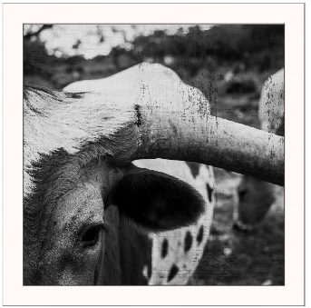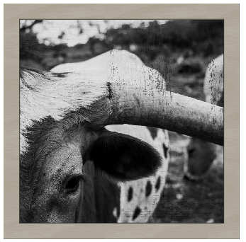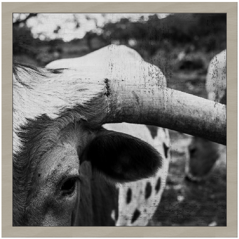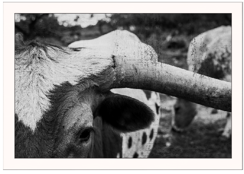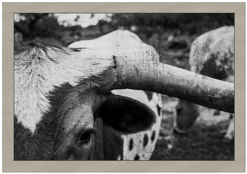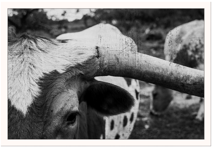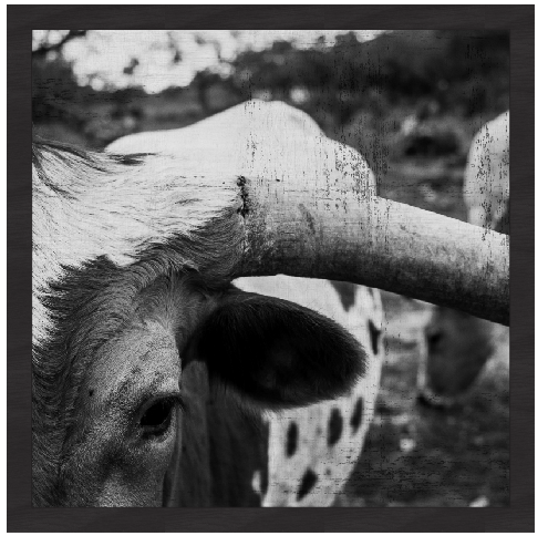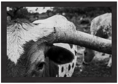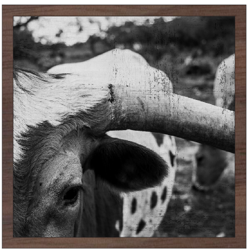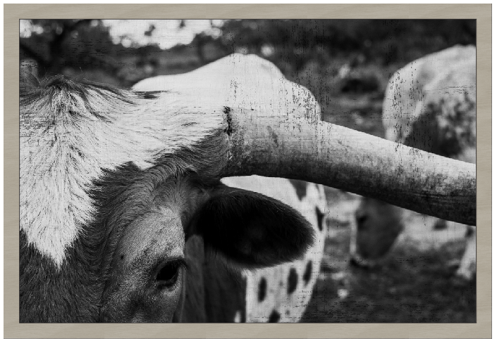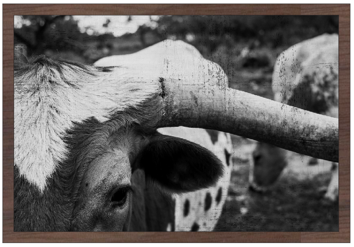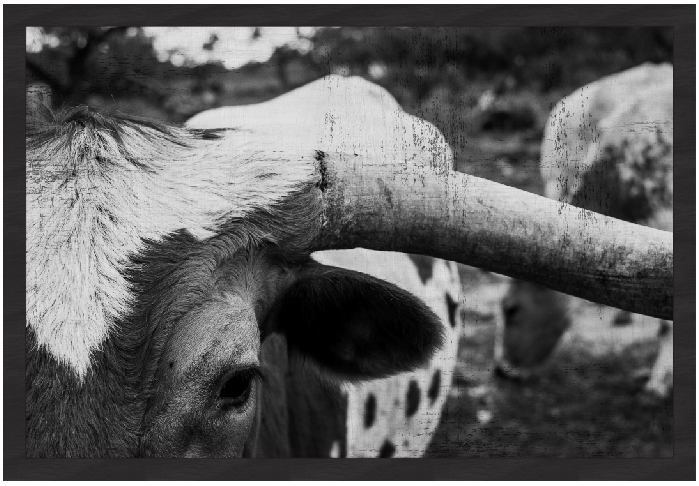 Peek-a-BULL B&W - Rustic Distressed Print. Available with your choice of Farmhouse Style Frames.