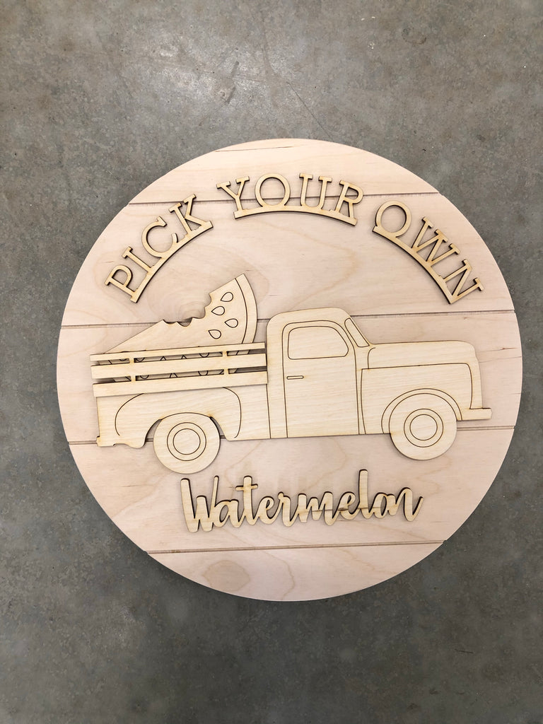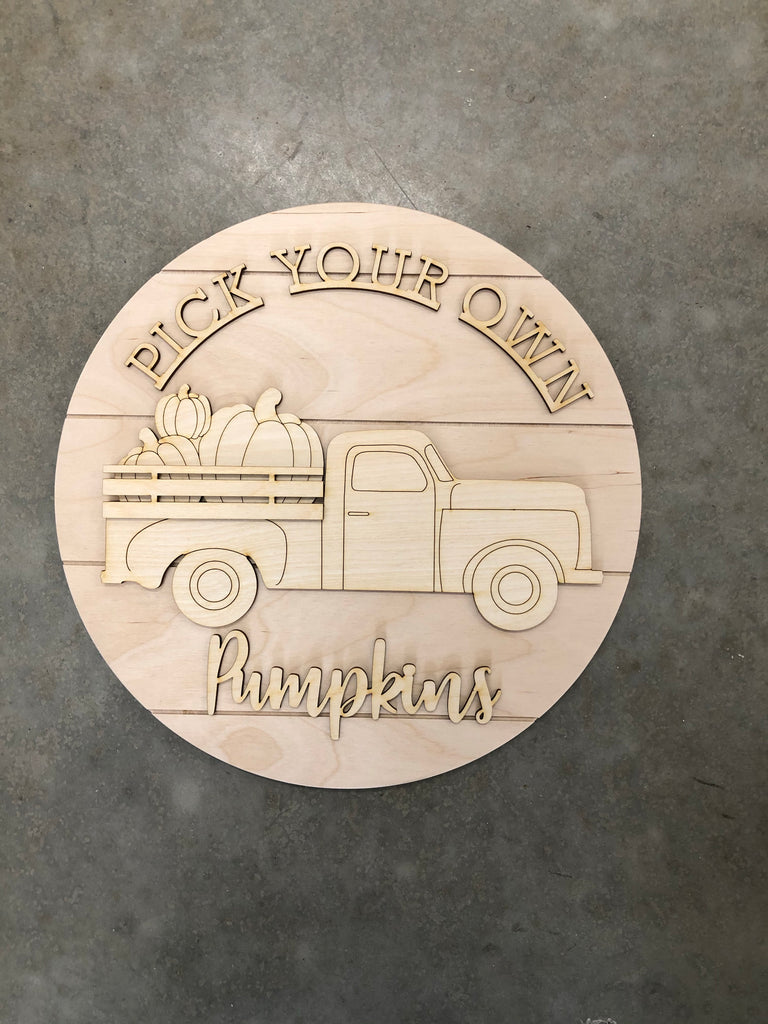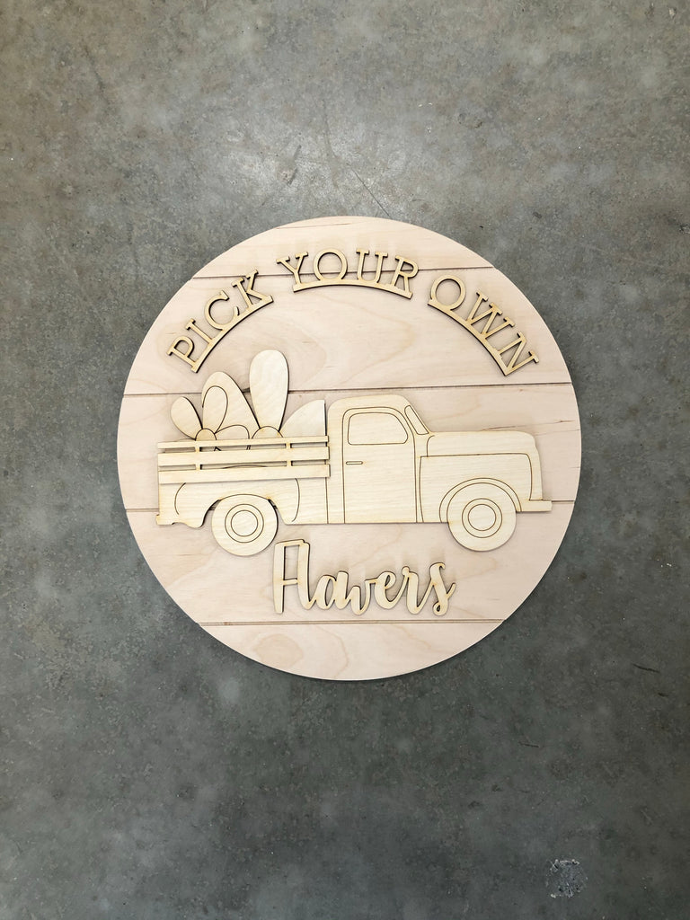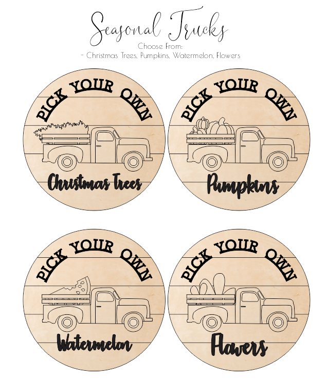 By popular request, this "Pick your Own" truck design is now available!  This design is available in two different sizes on 18" or 12" Pallet Rounds.