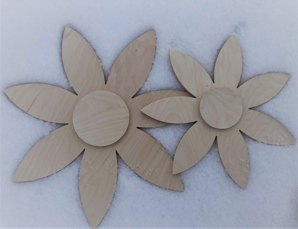 Both the petals/centre are cut from 1/2" Baltic Birch Plywood. Design comes unassembled, but sanded and ready for paint/stain. (To be assembled by buyer).