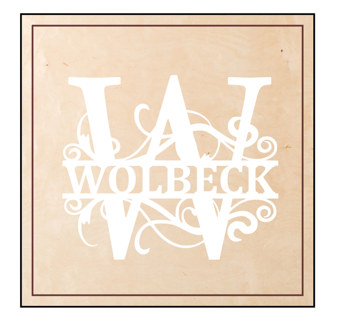 D) 14" Monogram on an 18" Framed Sign Blank.  Laser cut from 1/8" Baltic Birch Plywood. $54.99