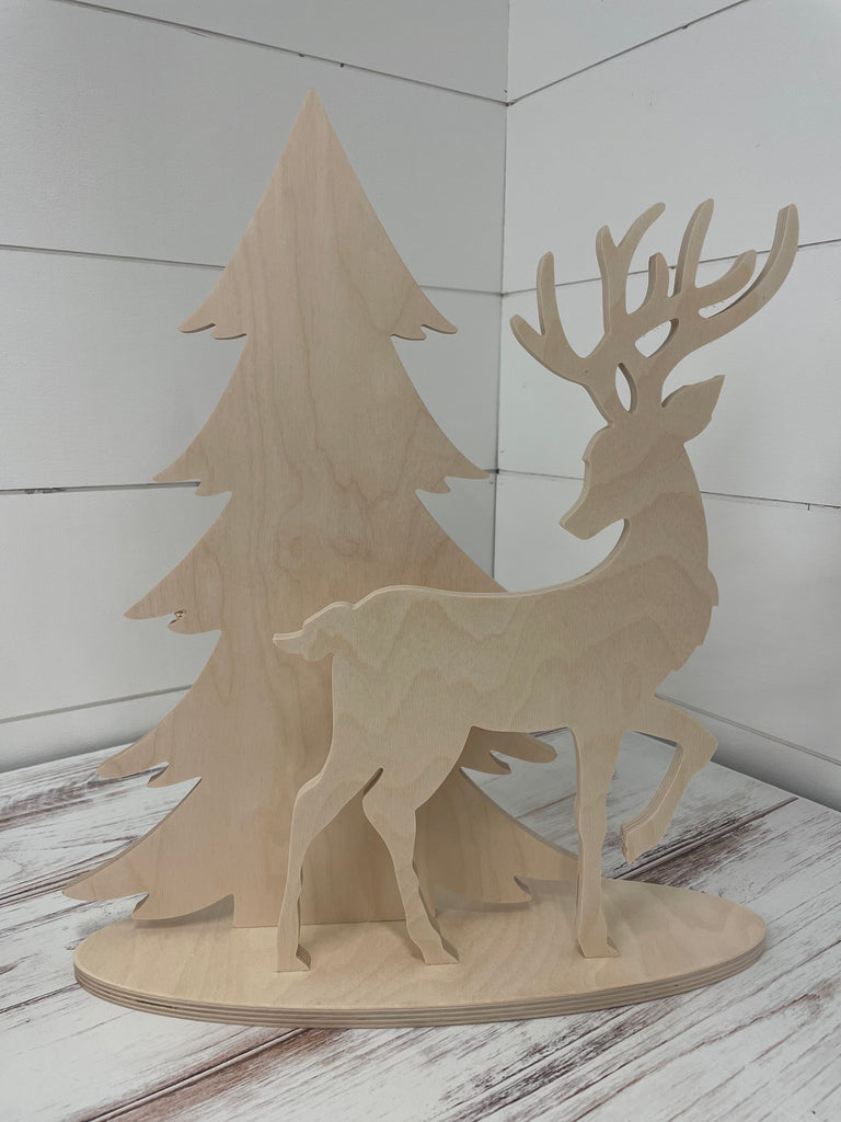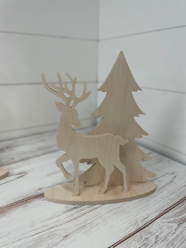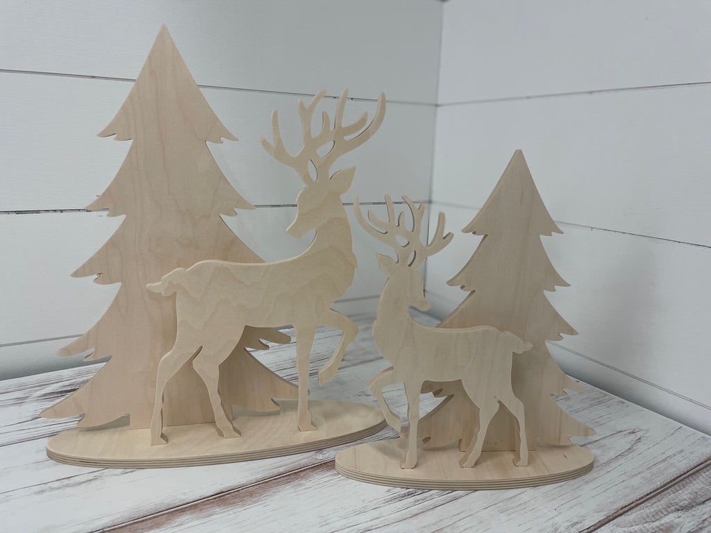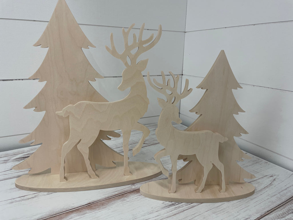 Well, our new little deer and tree designs are so sweet! The perfect little winter themed display. Available in two sizes. Design includes Tree, Deer and Base, ready to slot together. Simply paint, assemble and display!