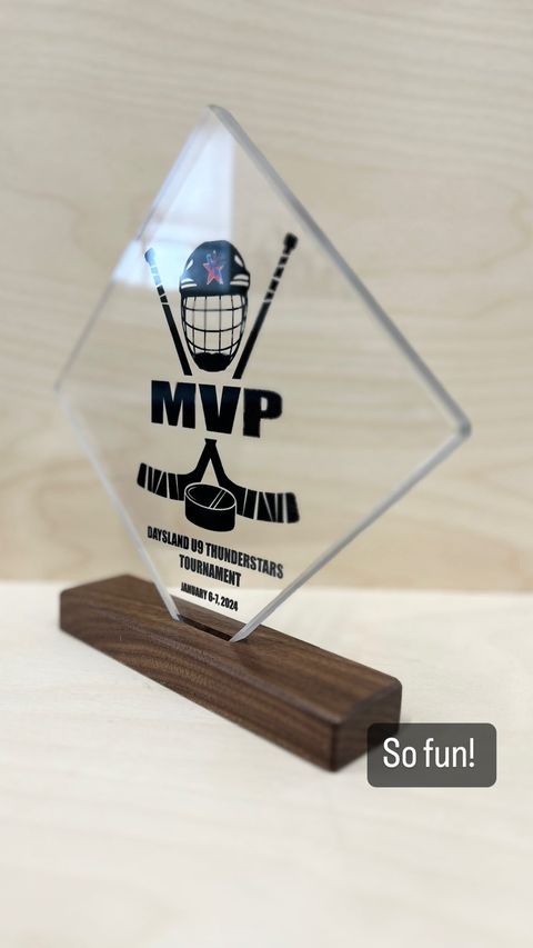 This is where the sky is the limit.  Simple acrylic/walnut trophies, or let's chat about doing something completely custom.   Ballpark pricing in the $20-40 range.