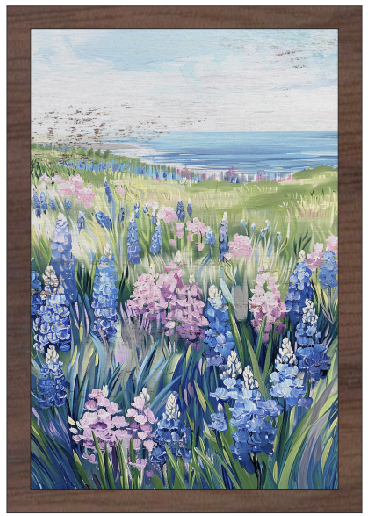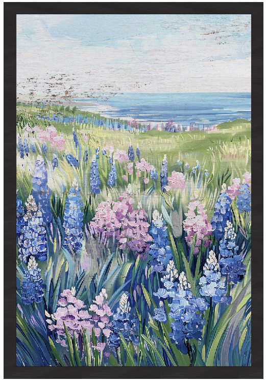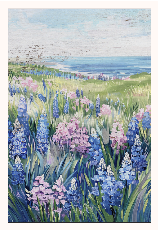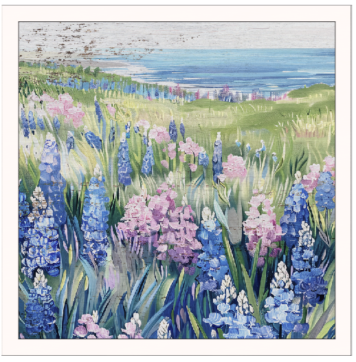 This colourful print of a gorgeous Valley of Hyacinth is a great way to add a pop of muted colour to your home.  Available with your choice of Farmhouse Style Frames.