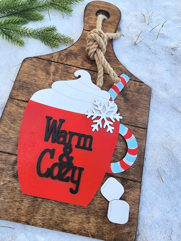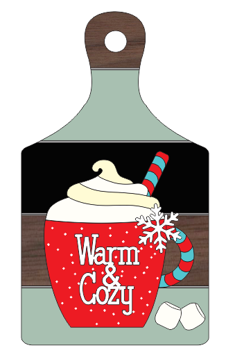 This fun new design is now ready to finish and decorate for your home for the holidays! "Warm and Cozy" cutting board design.