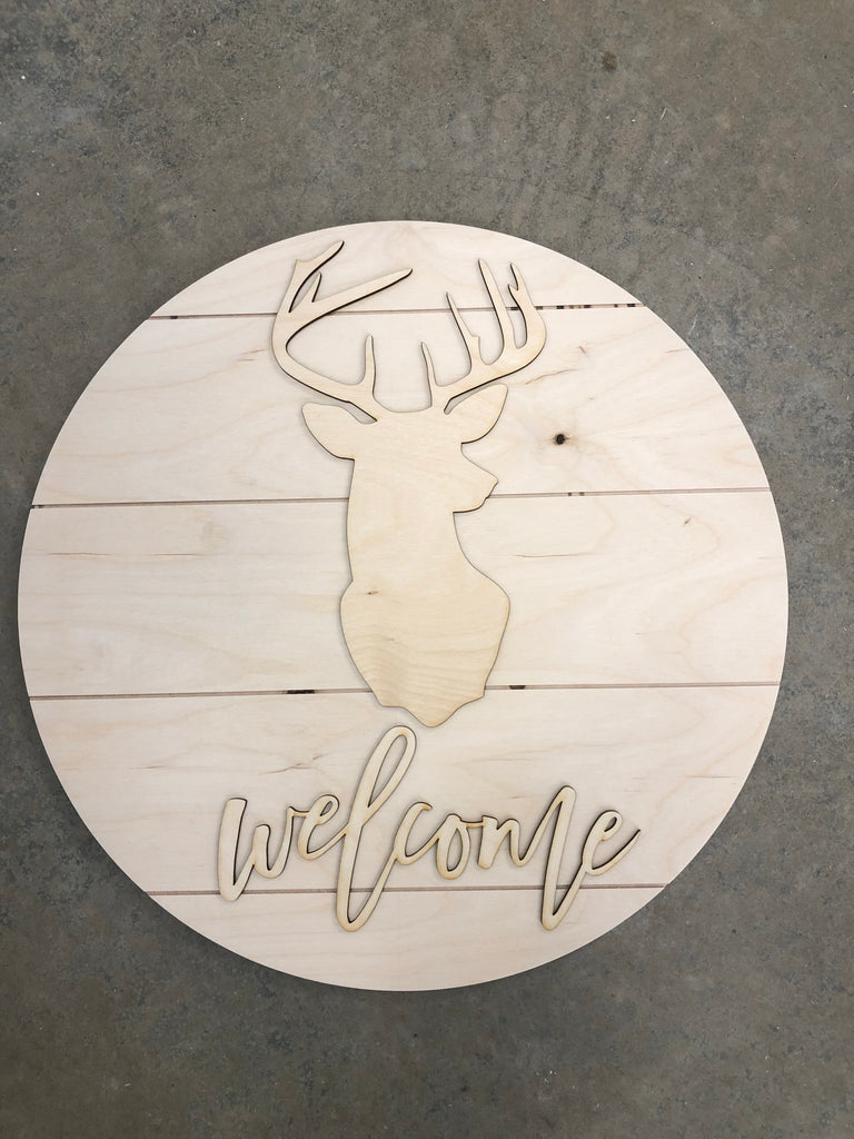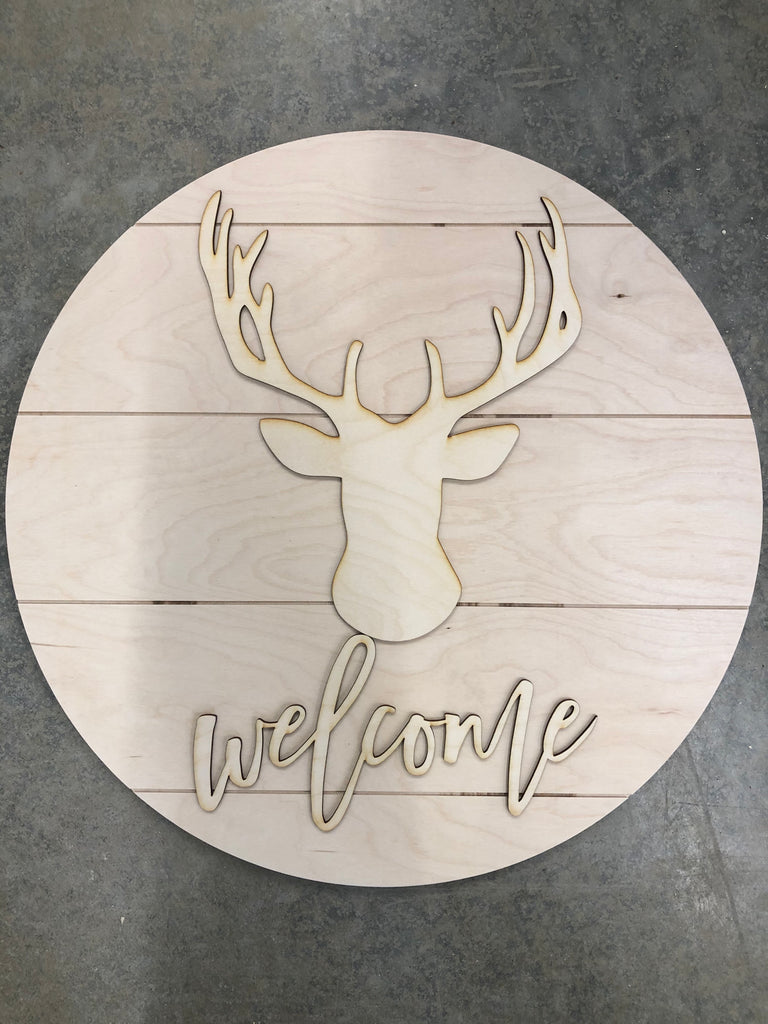 One of our most popular shapes is now available as a kit! Your choice of Deer shapes along with 'welcome' all laser cut from 1/8" Baltic Birch Plywood. Also include is an 18" Pallet Round.