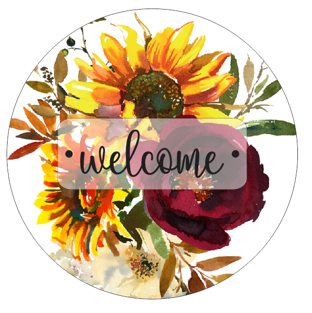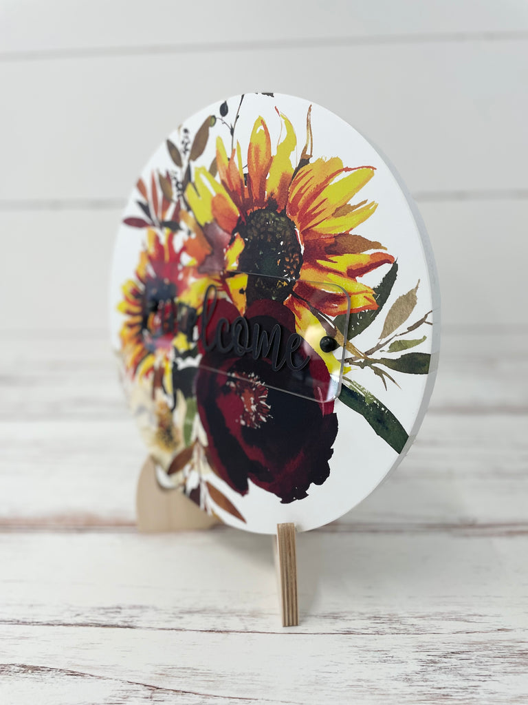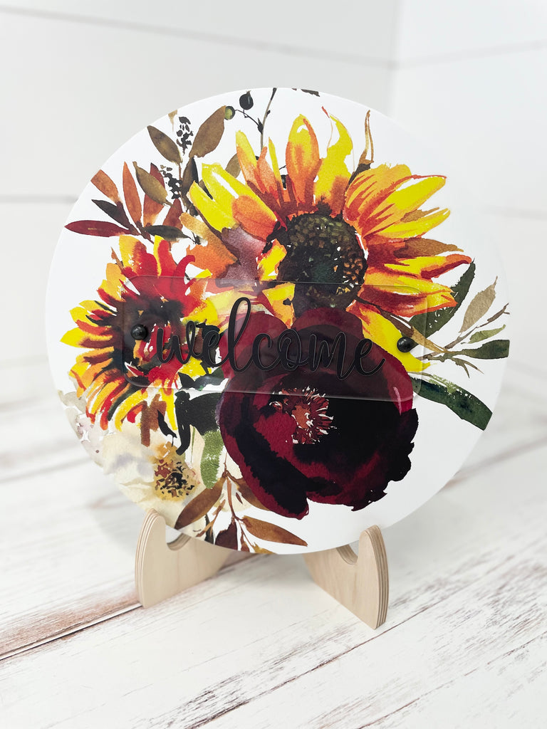 Welcome Round with Fall Florals and Sunflowers - with Acrylic Plaque